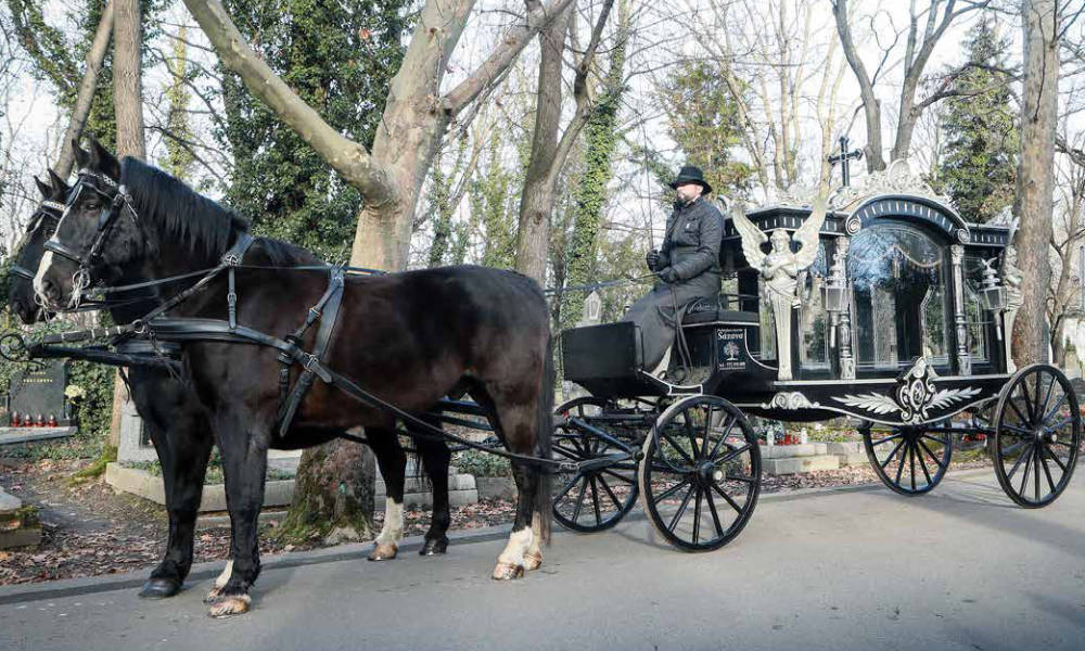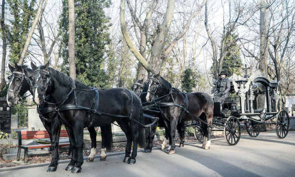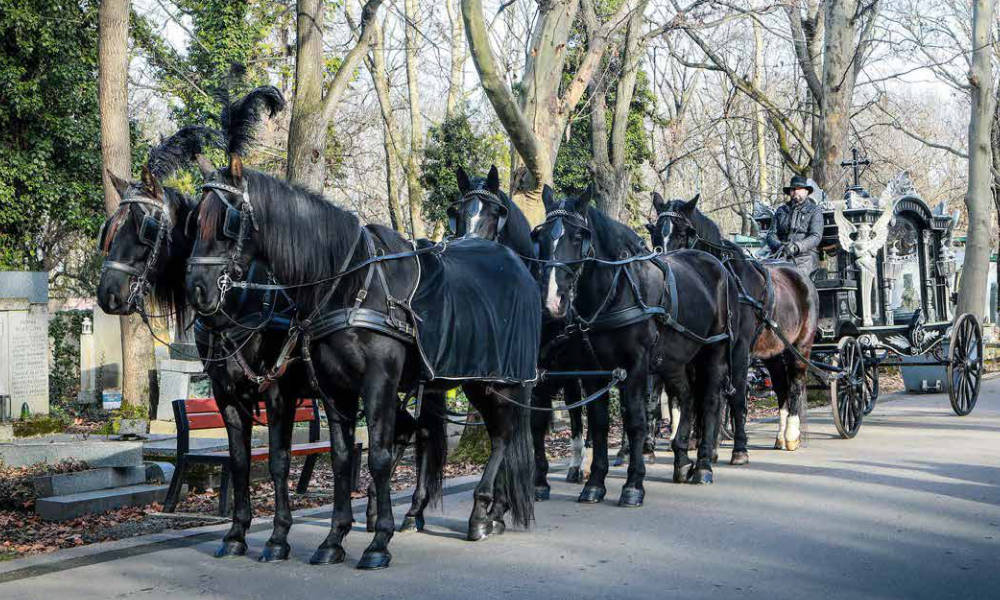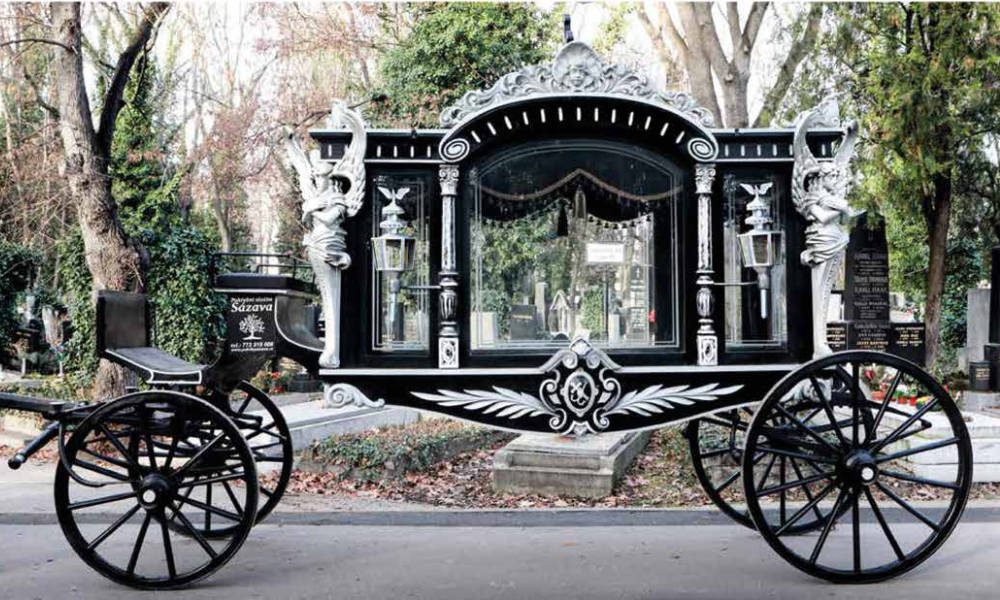 Pro výjimečně důstojnou poslední cestu zesnulého nabízíme možnost využít náš historický pohřební kočár v luxuním provedení. Samozřejmostí je tažení koňmi.